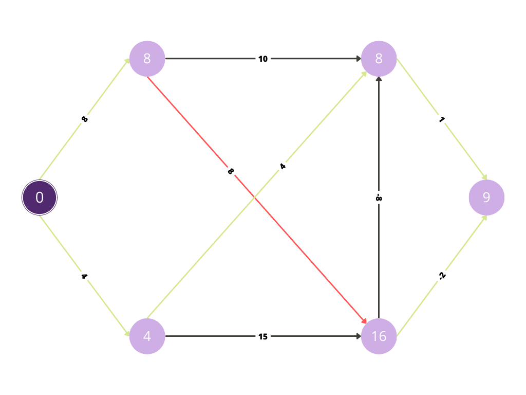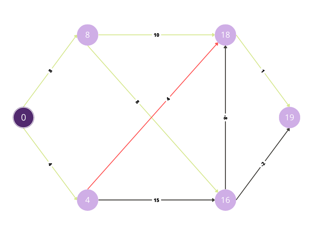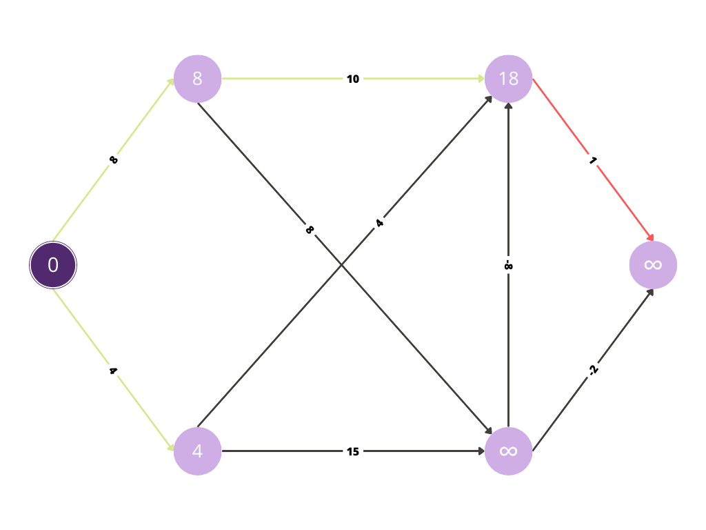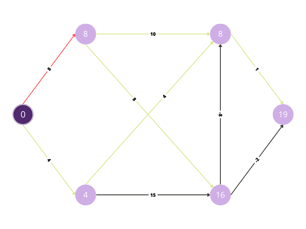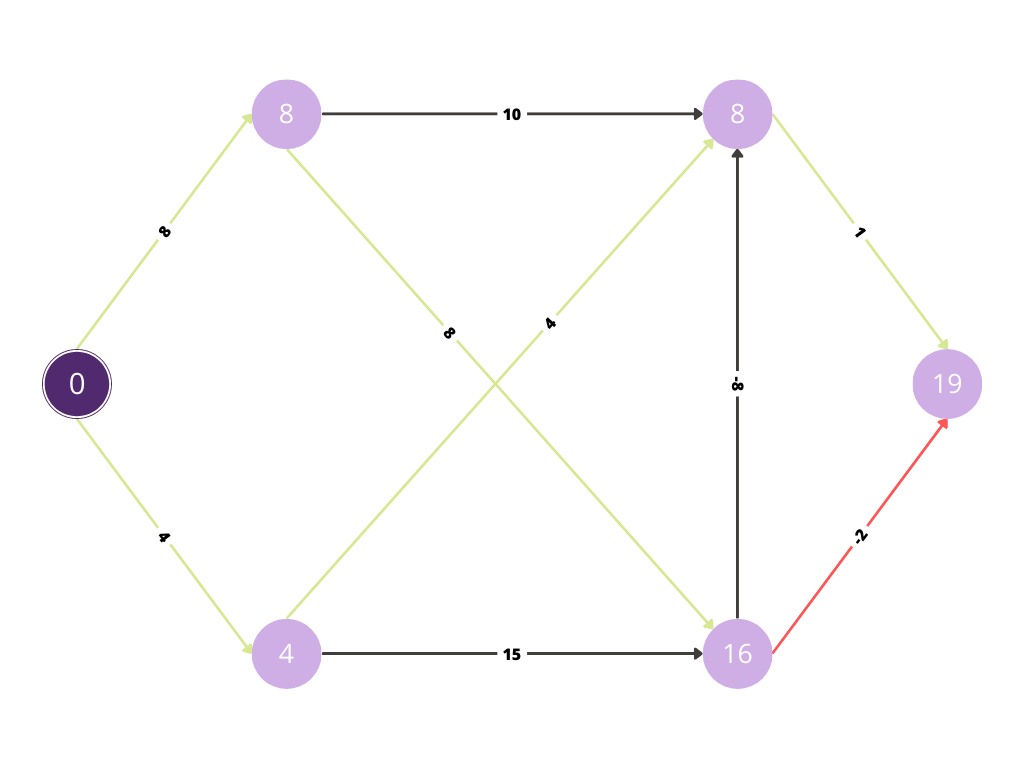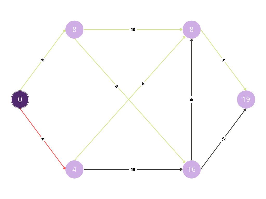 Similarly, with the red path we will continue to evaluate the rest of the graph for any possible improvement in cost.