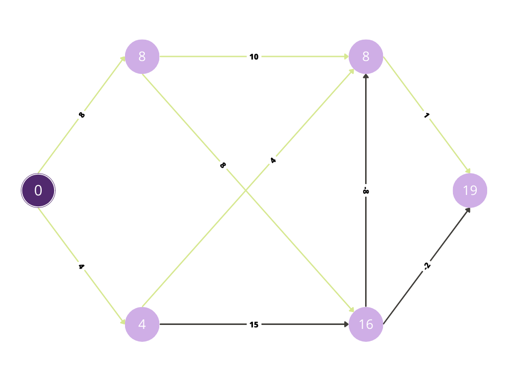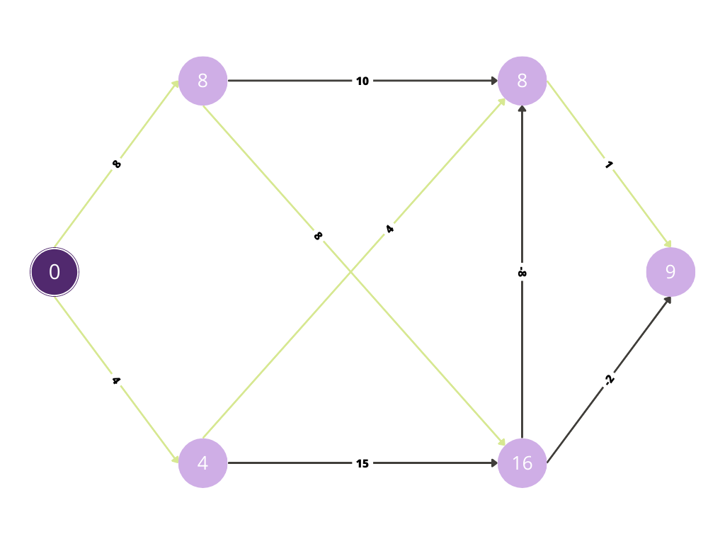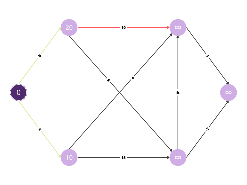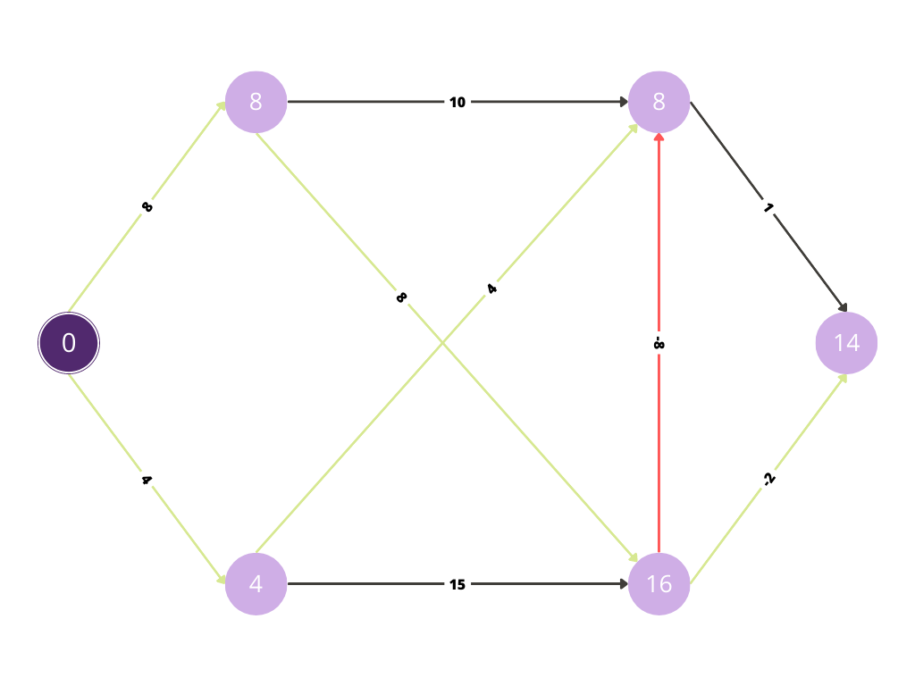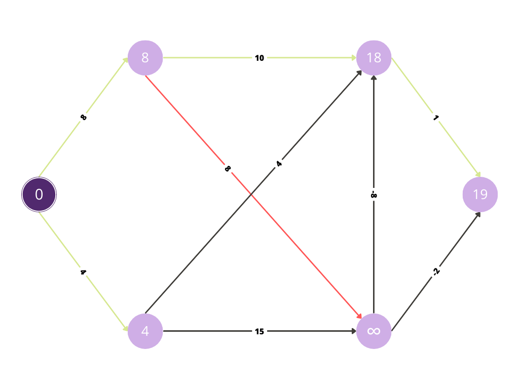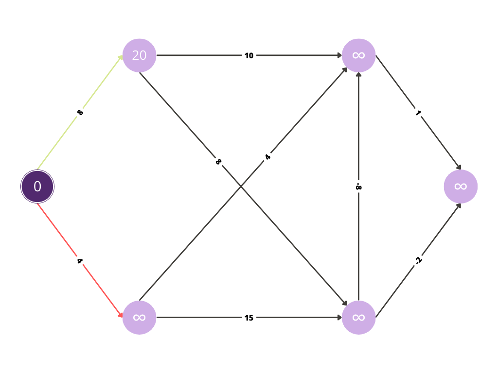 Similarly, with the red path we will continue to evaluate the rest of the graph for any possible improvement in cost.