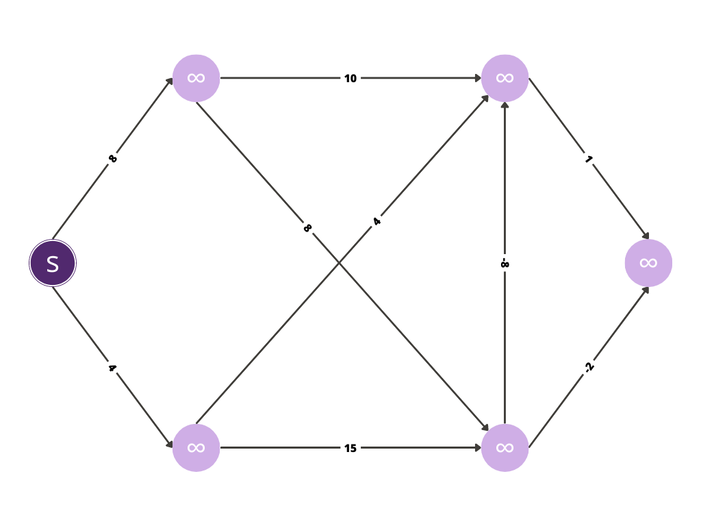 This is the graph for which we are going to visualise the process of the Bellman-Ford algorithm step wise.